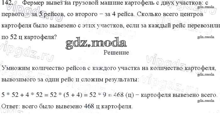 ОТВЕТ на задание № 142 Учебник по Математике 4 класс Моро Школа России