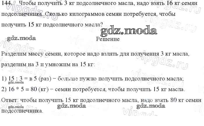 ОТВЕТ на задание № 144 Учебник по Математике 4 класс Моро Школа России