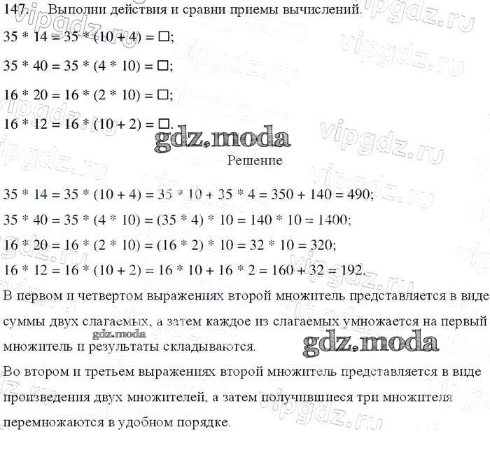 ОТВЕТ на задание № 147 Учебник по Математике 4 класс Моро Школа России