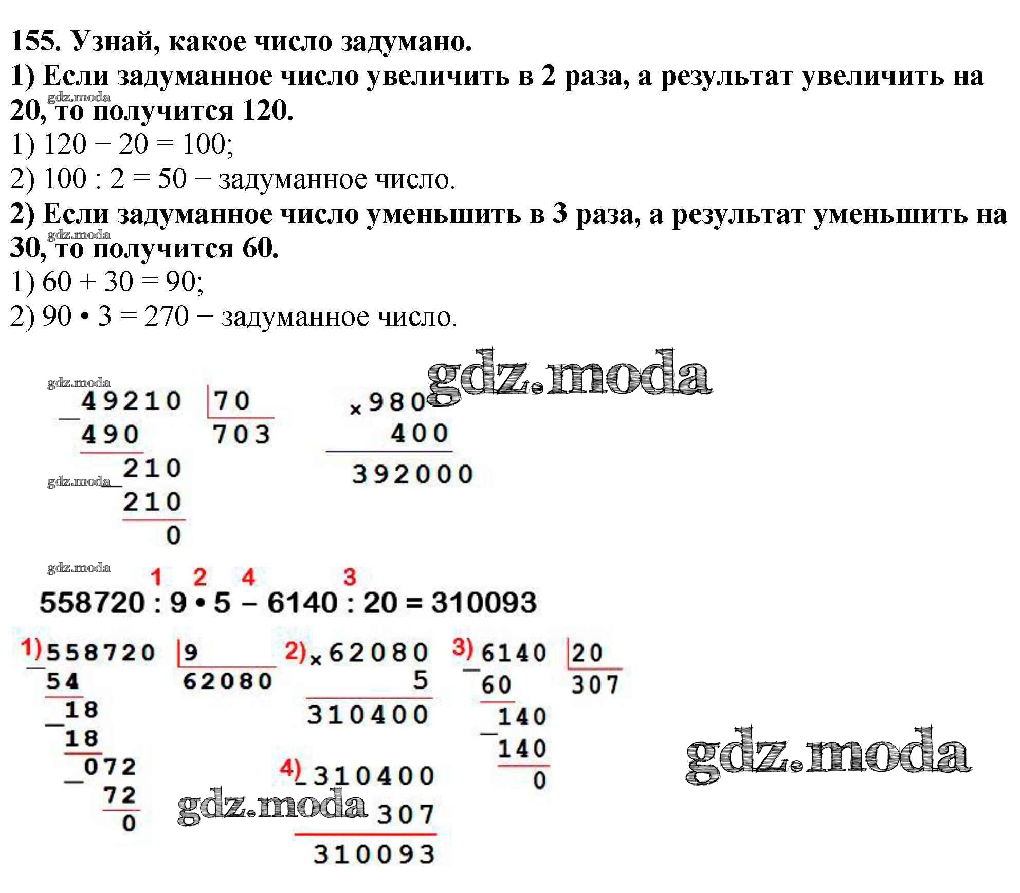 ОТВЕТ на задание № 155 Учебник по Математике 4 класс Моро Школа России