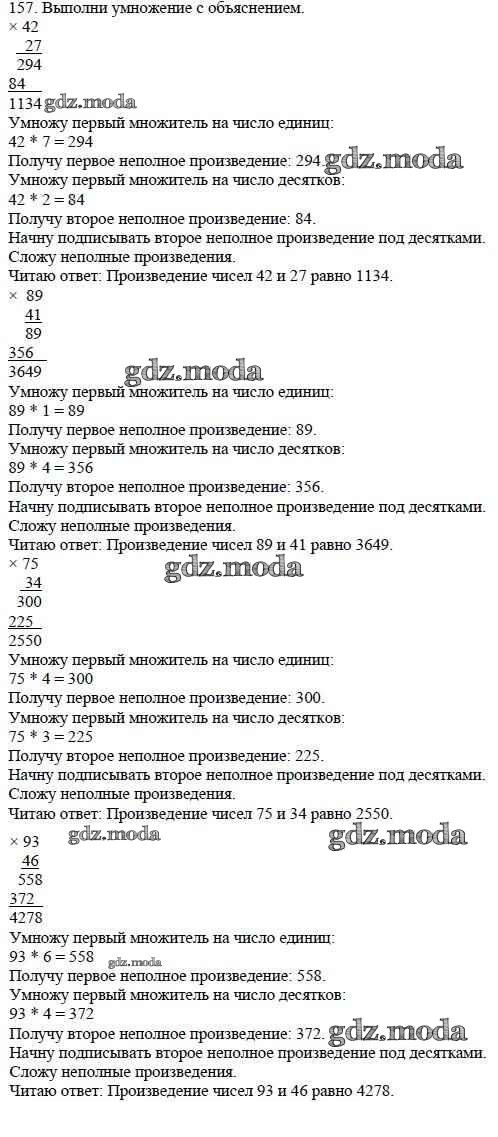 ОТВЕТ на задание № 157 Учебник по Математике 4 класс Моро Школа России