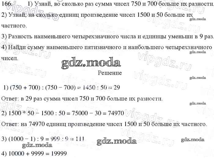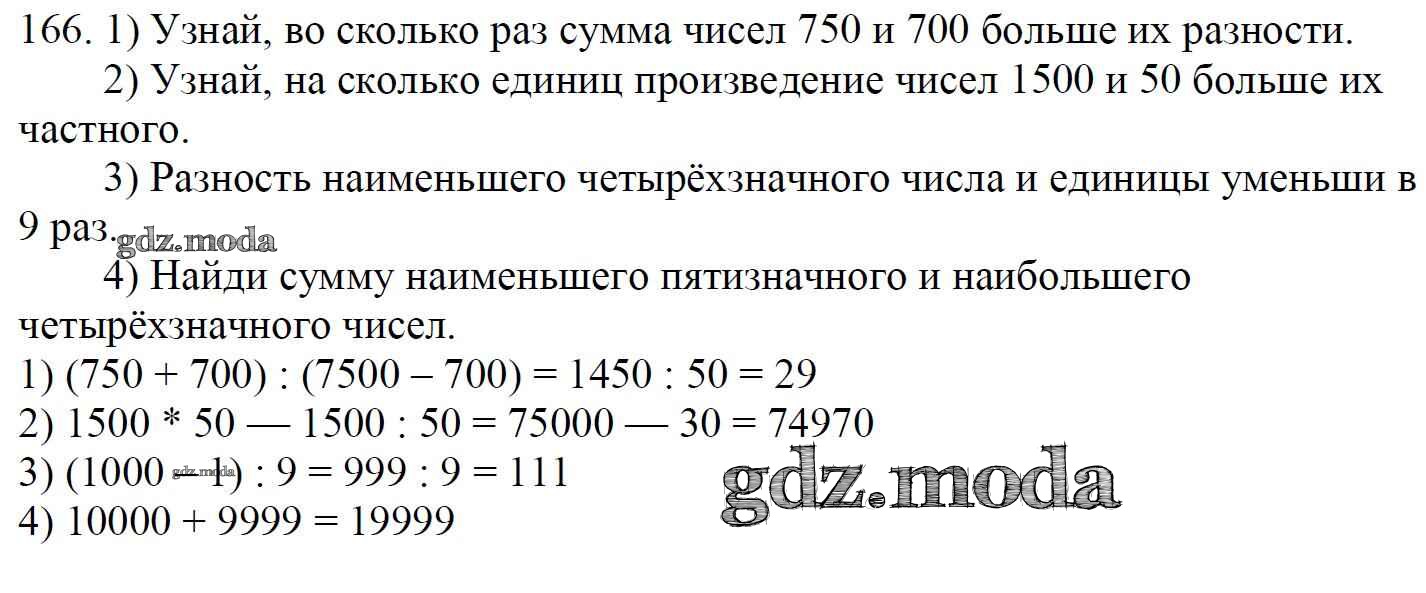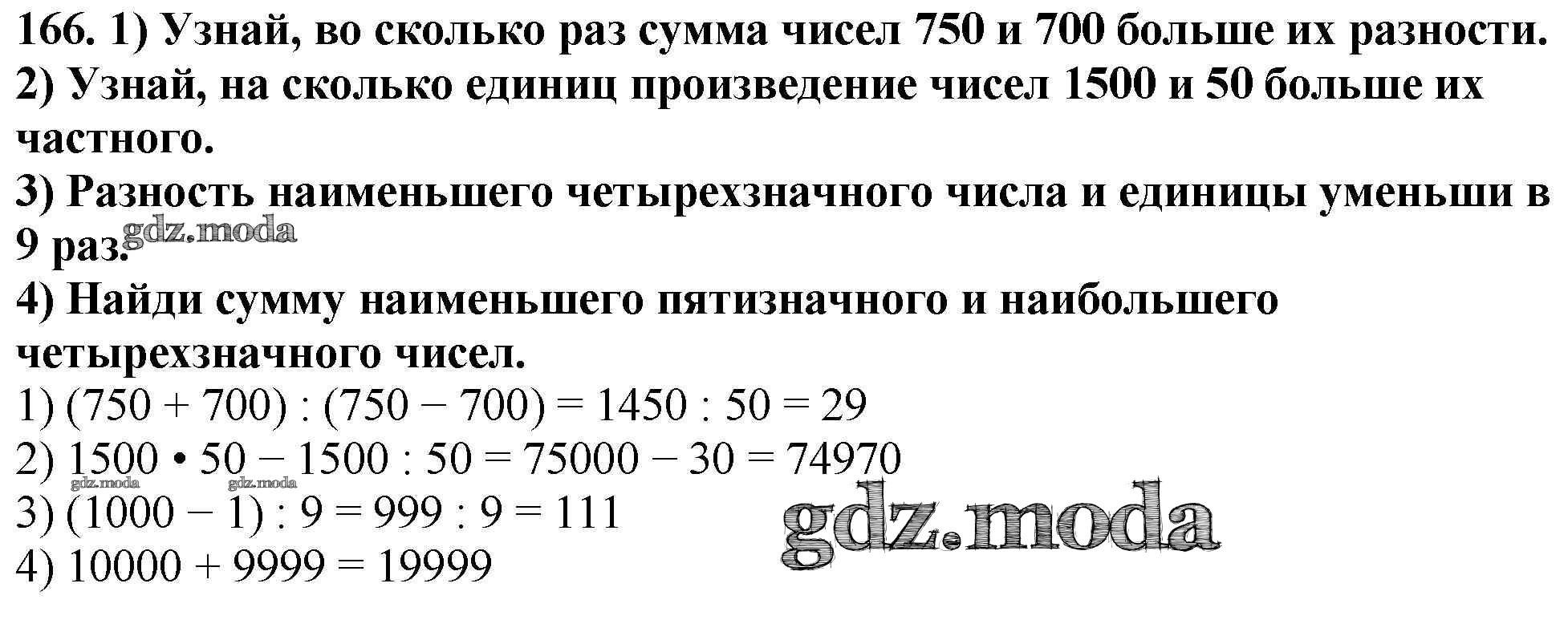 ОТВЕТ на задание № 166 Учебник по Математике 4 класс Моро Школа России