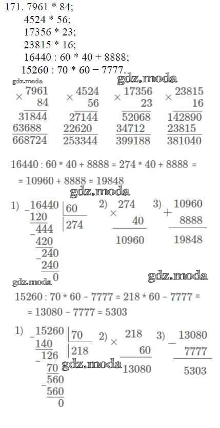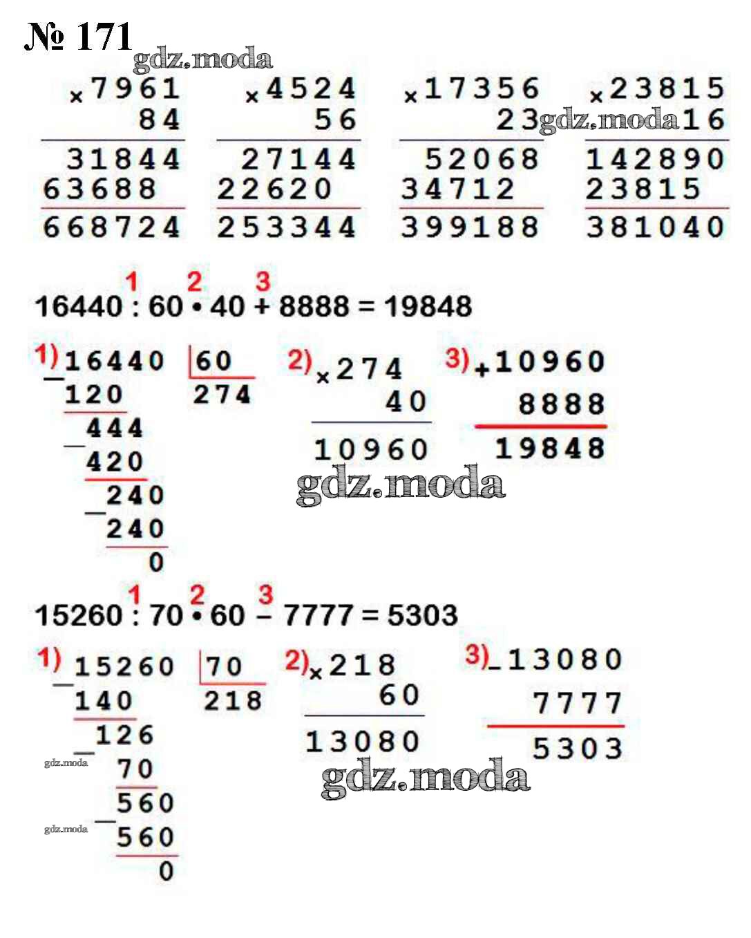 ОТВЕТ на задание № 171 Учебник по Математике 4 класс Моро Школа России