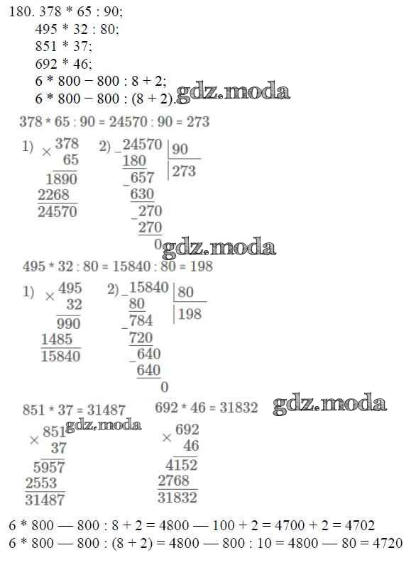 ОТВЕТ на задание № 180 Учебник по Математике 4 класс Моро Школа России