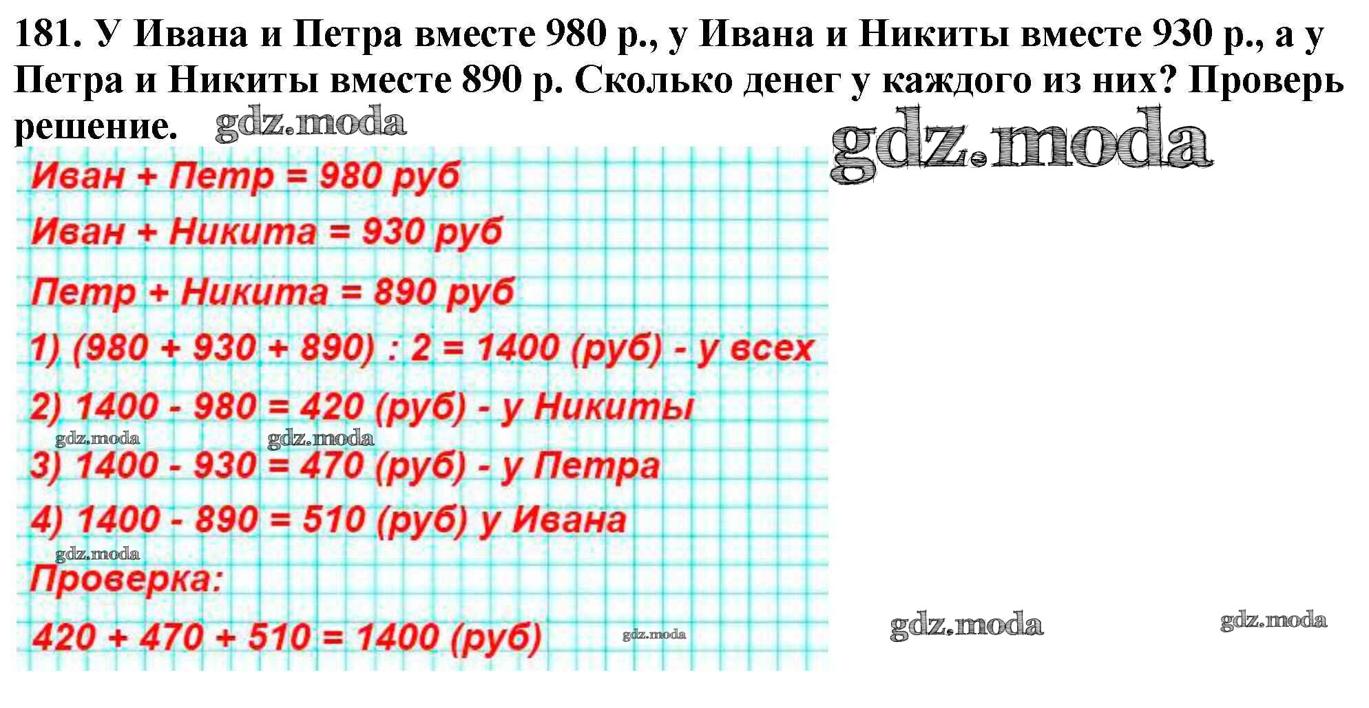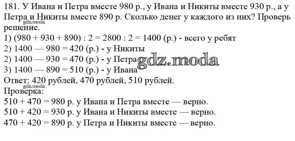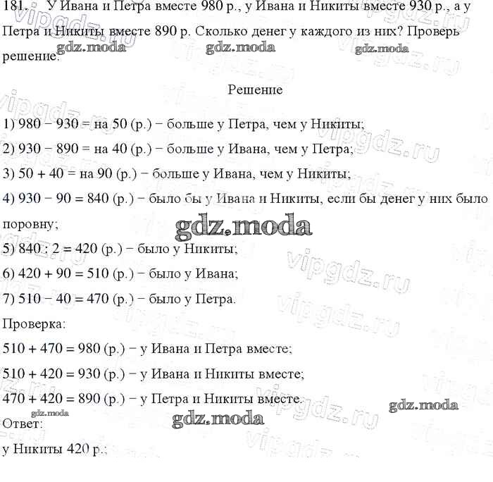 ОТВЕТ на задание № 181 Учебник по Математике 4 класс Моро Школа России