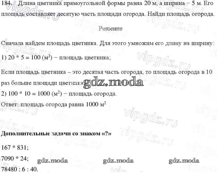ОТВЕТ на задание № 184 Учебник по Математике 4 класс Моро Школа России