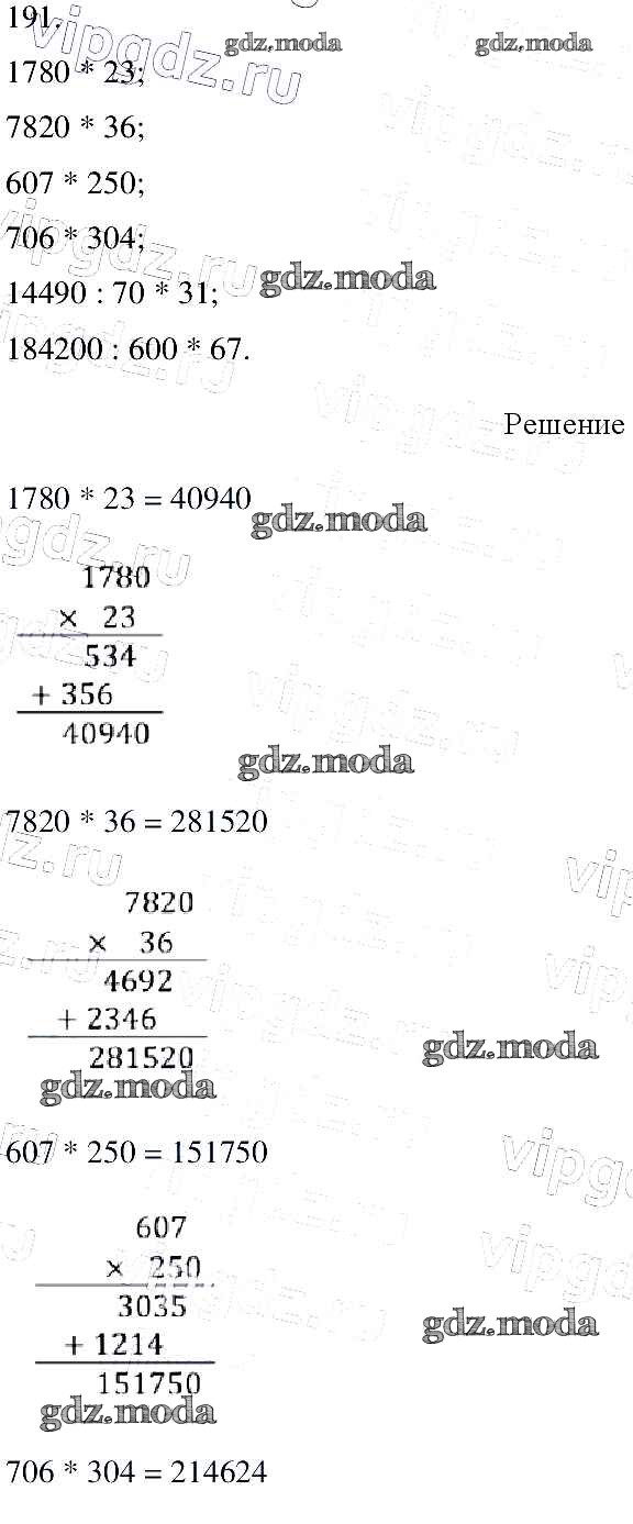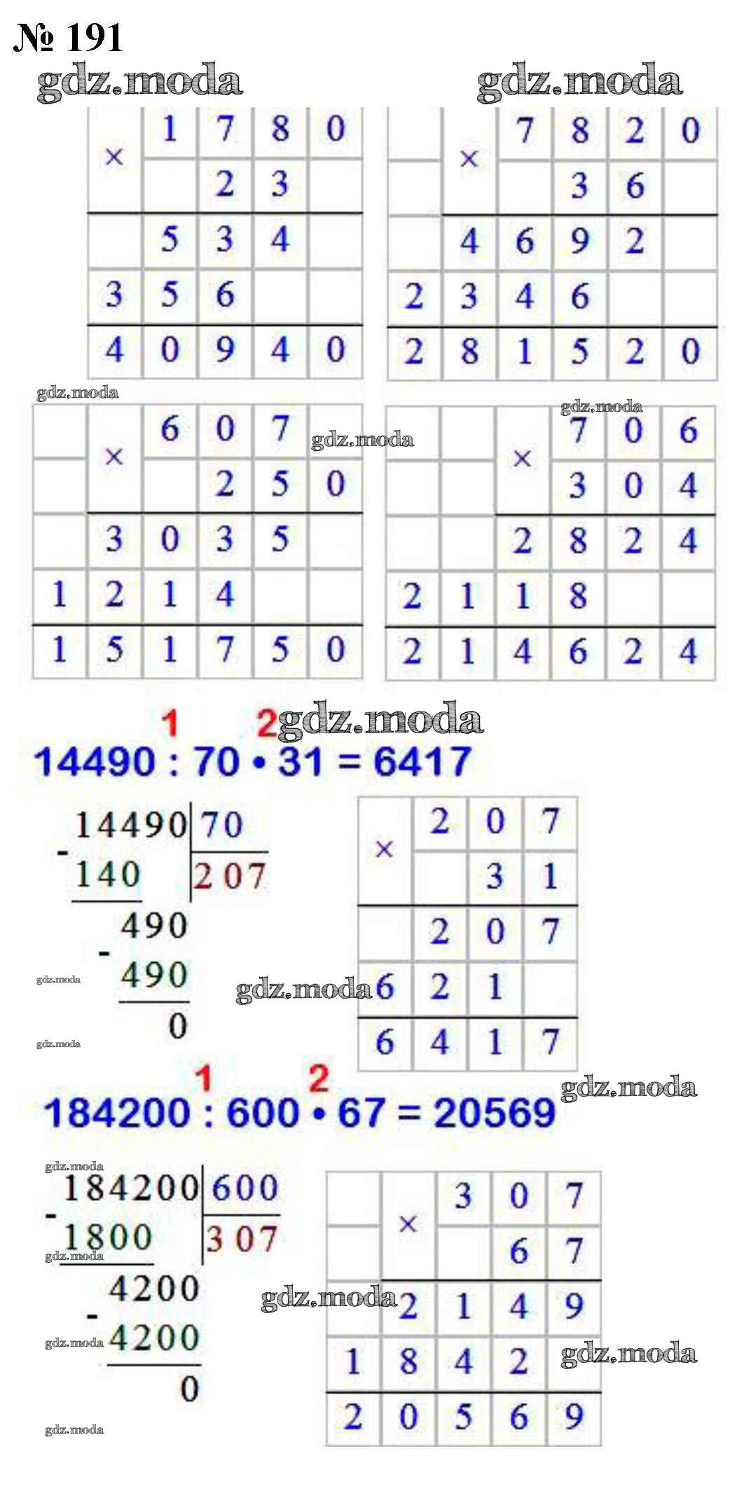 ОТВЕТ на задание № 191 Учебник по Математике 4 класс Моро Школа России