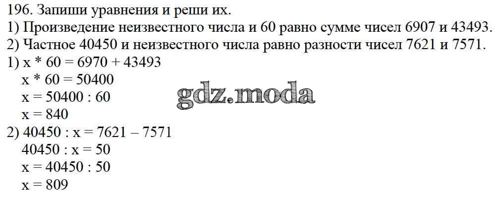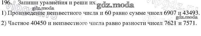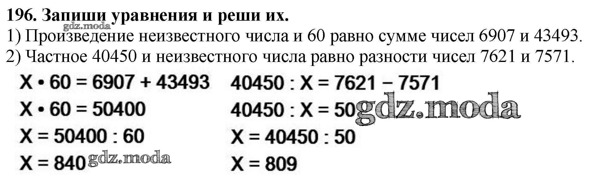 ОТВЕТ на задание № 196 Учебник по Математике 4 класс Моро Школа России