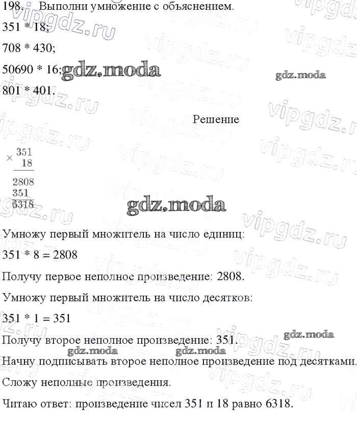 ОТВЕТ на задание № 198 Учебник по Математике 4 класс Моро Школа России