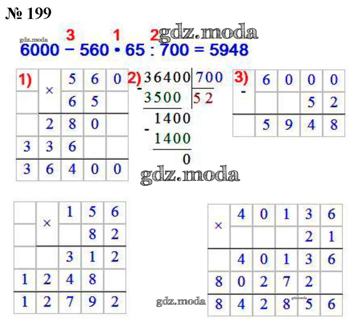 ОТВЕТ на задание № 199 Учебник по Математике 4 класс Моро Школа России