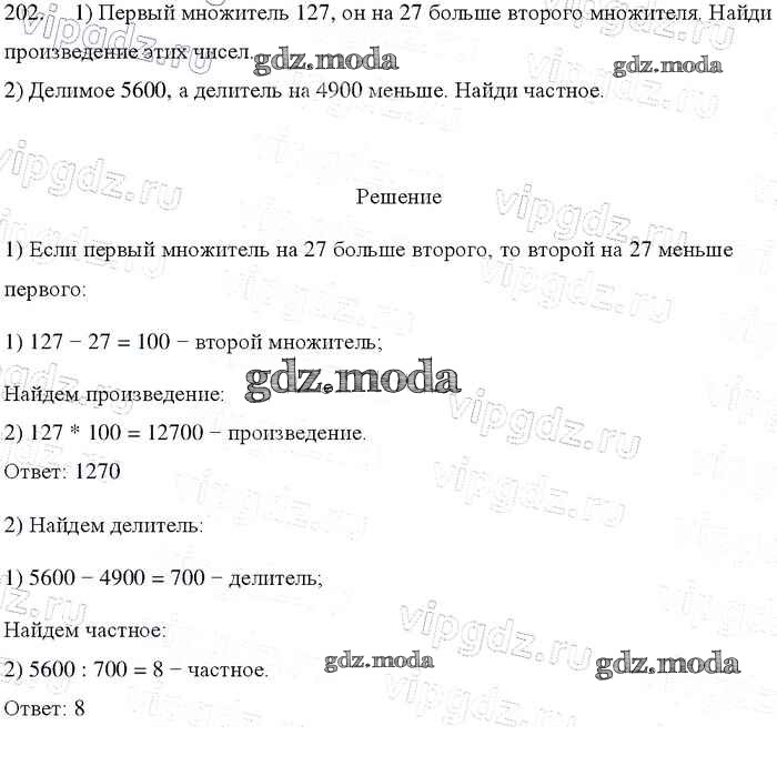 ОТВЕТ на задание № 202 Учебник по Математике 4 класс Моро Школа России