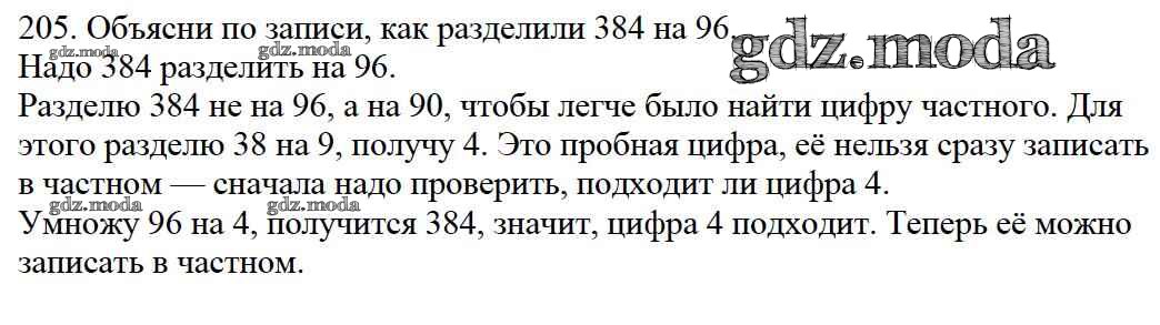 ОТВЕТ на задание № 205 Учебник по Математике 4 класс Моро Школа России