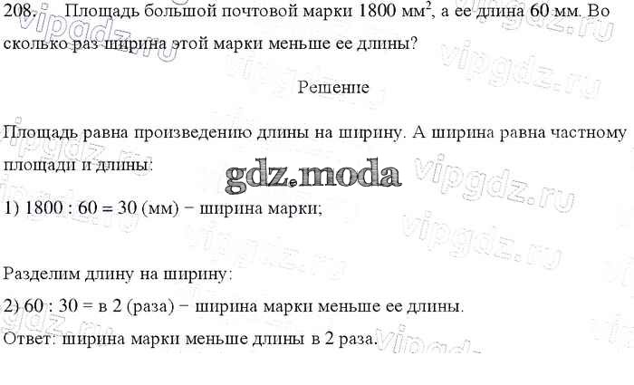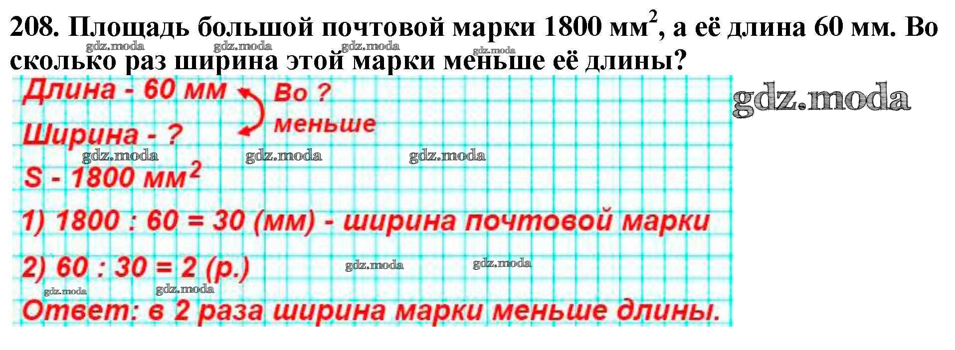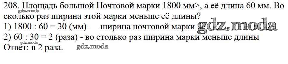 ОТВЕТ на задание № 208 Учебник по Математике 4 класс Моро Школа России