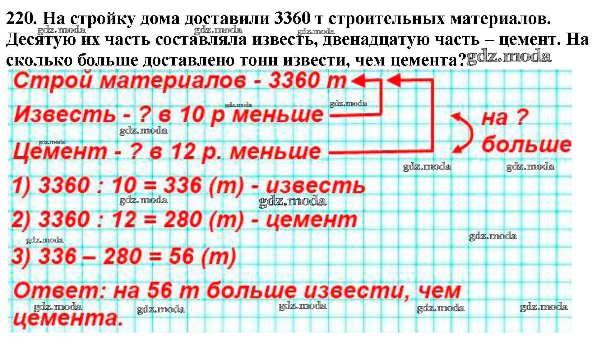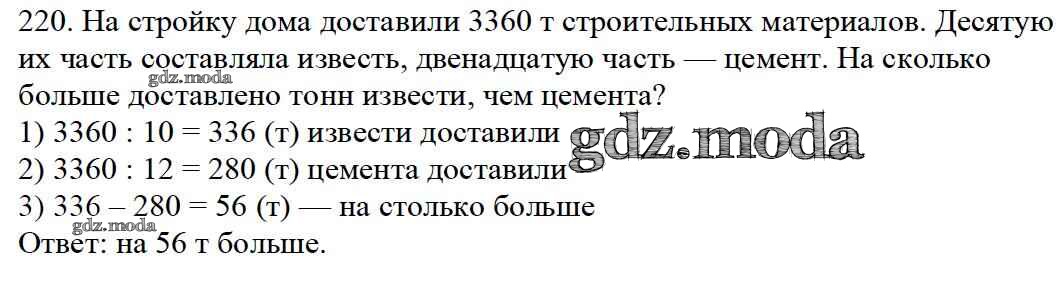 ОТВЕТ на задание № 220 Учебник по Математике 4 класс Моро Школа России