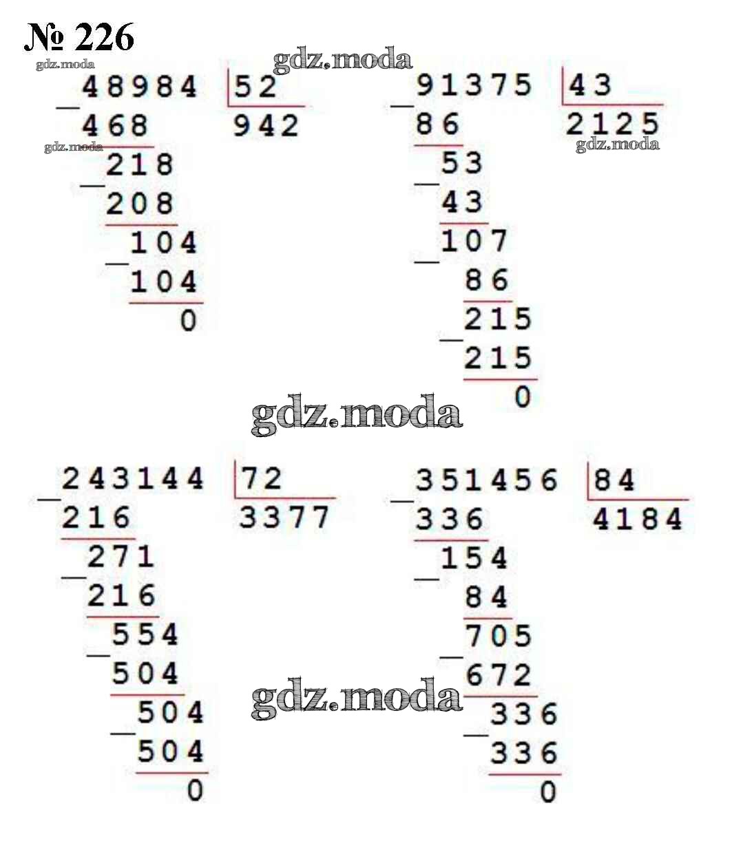 ОТВЕТ на задание № 226 Учебник по Математике 4 класс Моро Школа России