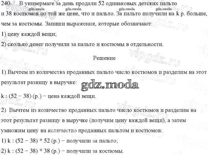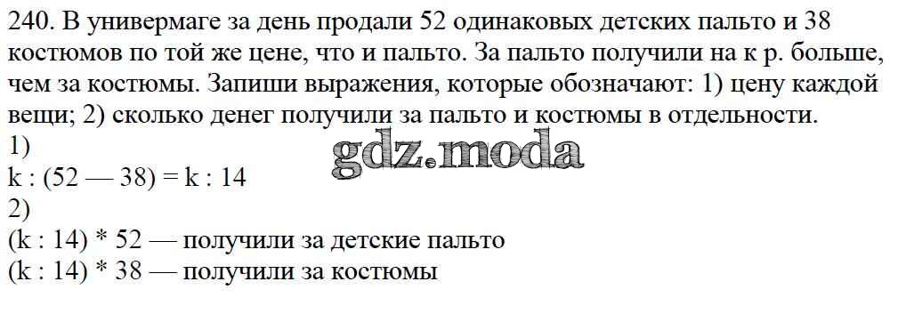 ОТВЕТ на задание № 240 Учебник по Математике 4 класс Моро Школа России
