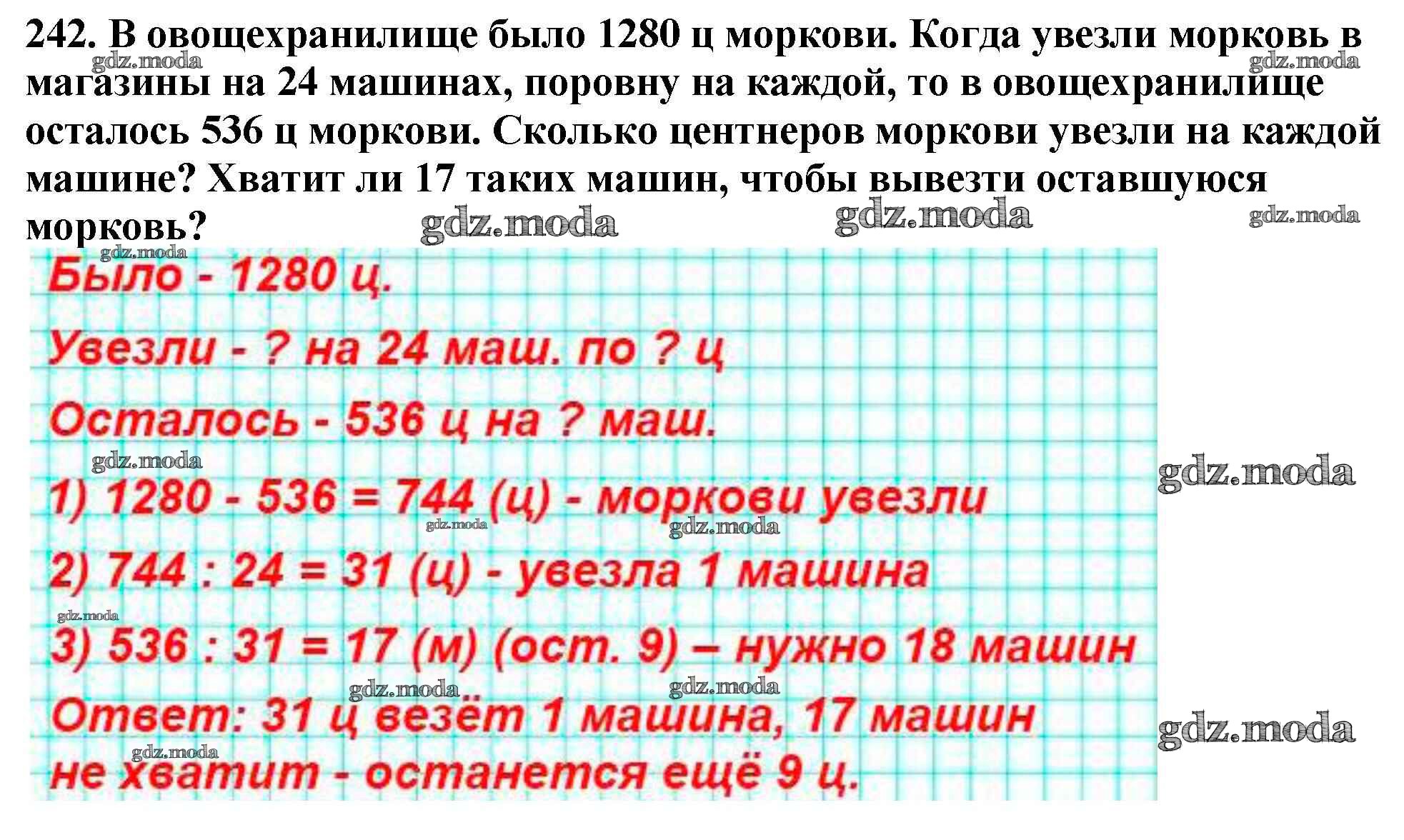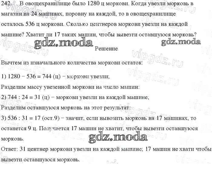 ОТВЕТ на задание № 242 Учебник по Математике 4 класс Моро Школа России