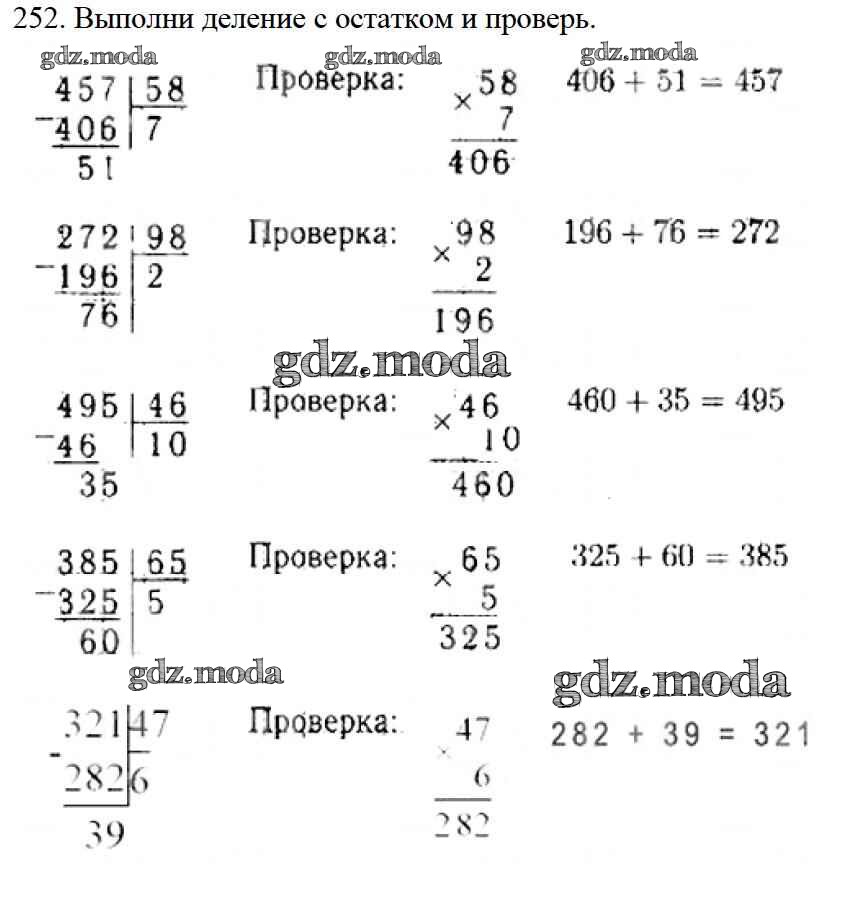 ОТВЕТ на задание № 252 Учебник по Математике 4 класс Моро Школа России