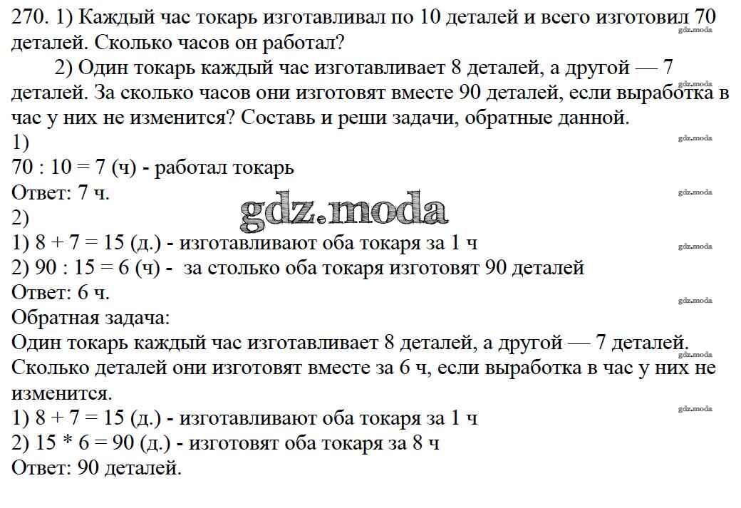 ОТВЕТ на задание № 270 Учебник по Математике 4 класс Моро Школа России