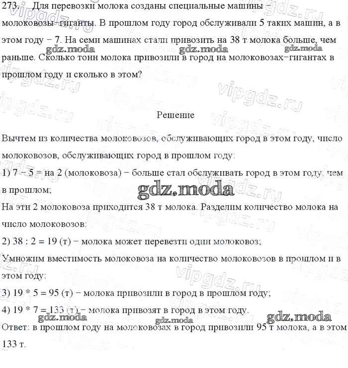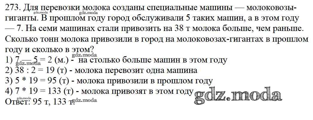 ОТВЕТ на задание № 273 Учебник по Математике 4 класс Моро Школа России