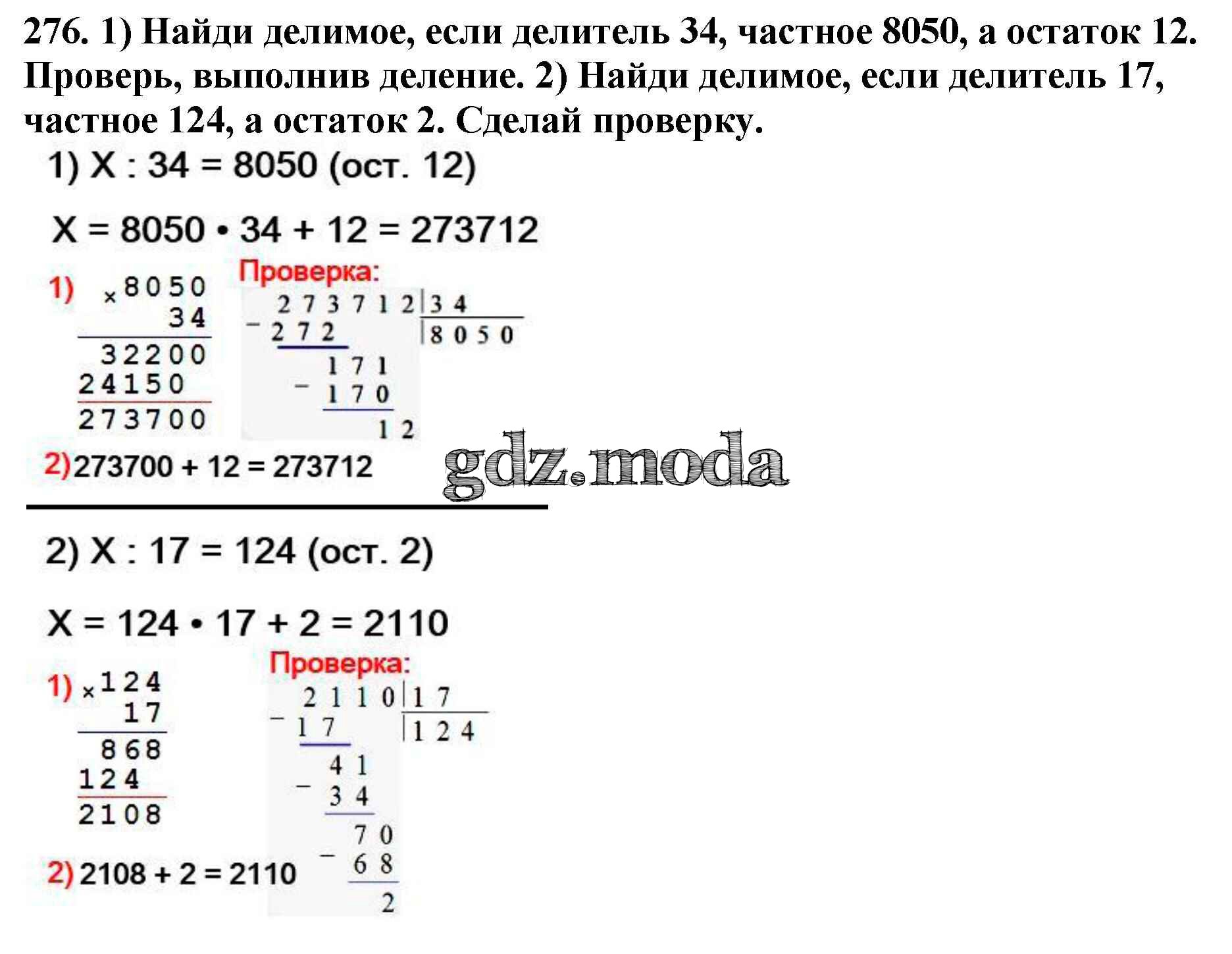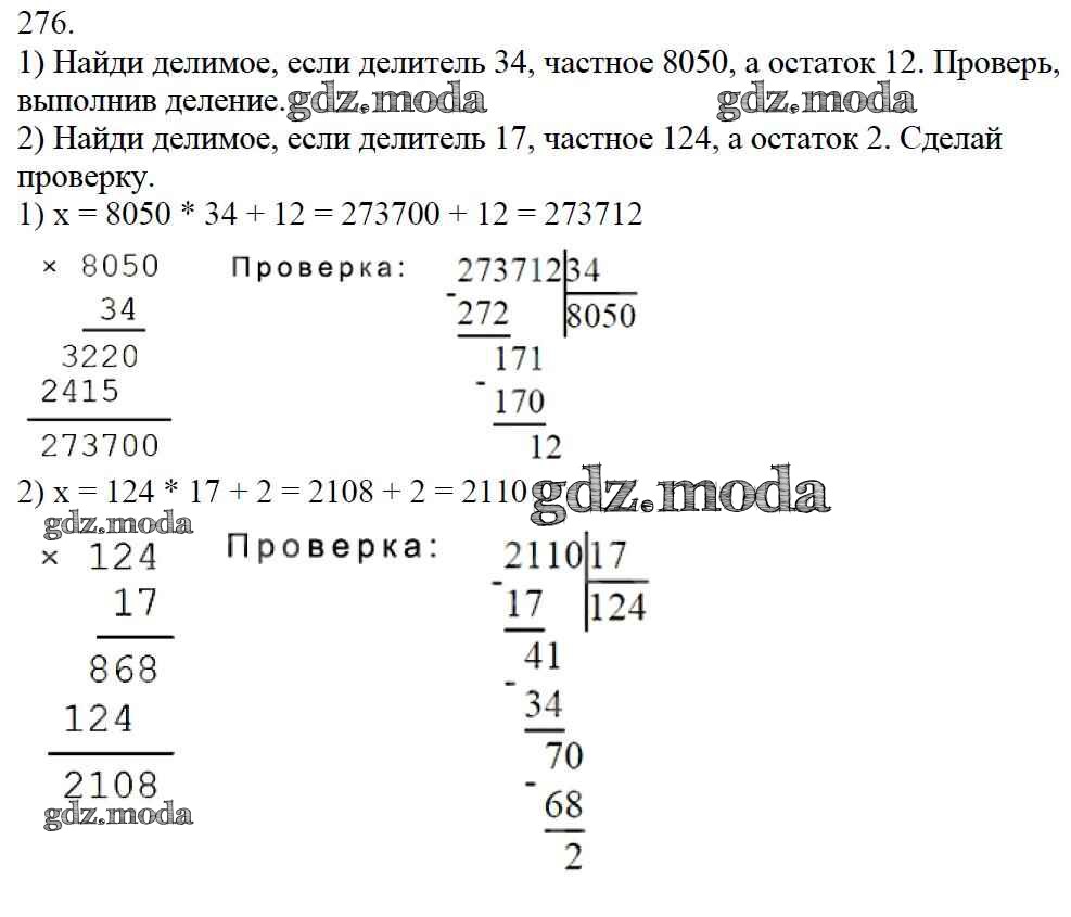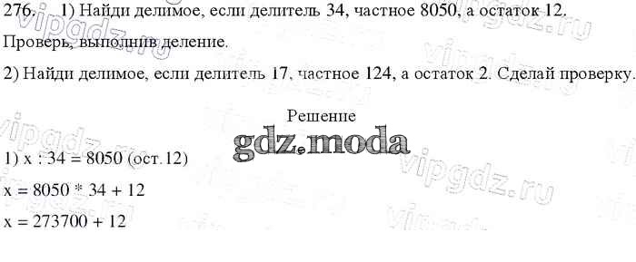 ОТВЕТ на задание № 276 Учебник по Математике 4 класс Моро Школа России