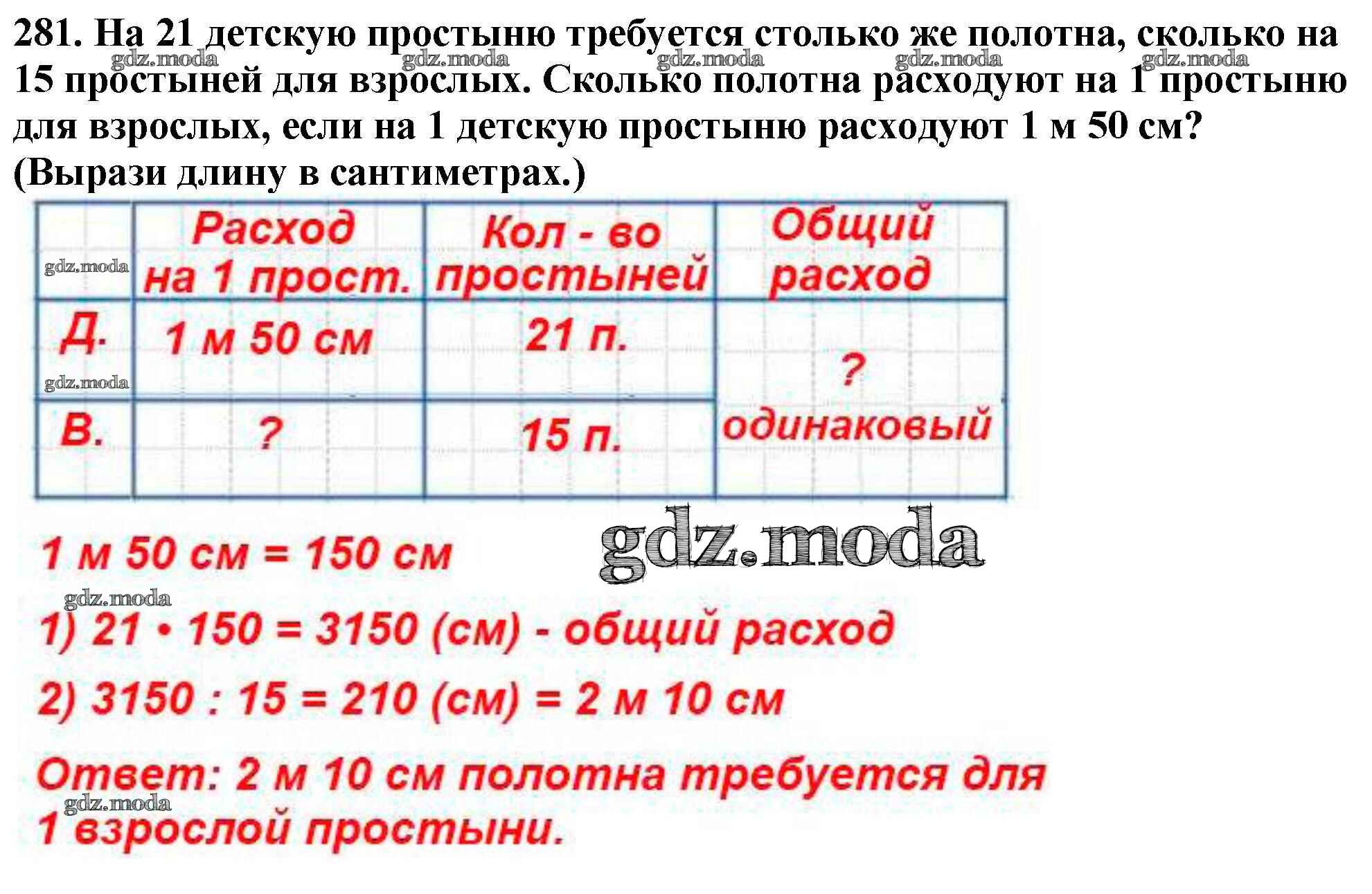 ОТВЕТ на задание № 281 Учебник по Математике 4 класс Моро Школа России