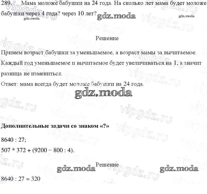 ОТВЕТ на задание № 289 Учебник по Математике 4 класс Моро Школа России