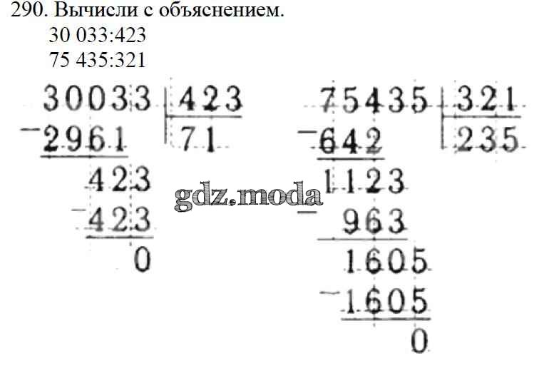 ОТВЕТ на задание № 290 Учебник по Математике 4 класс Моро Школа России