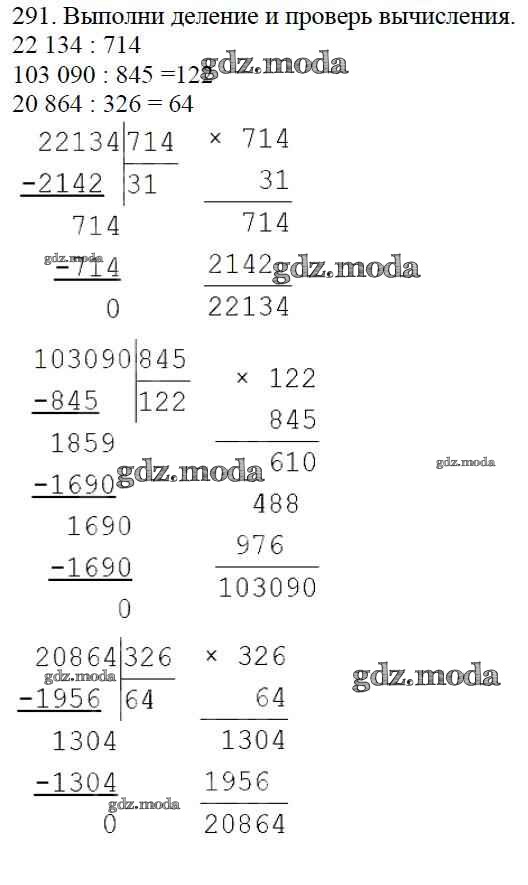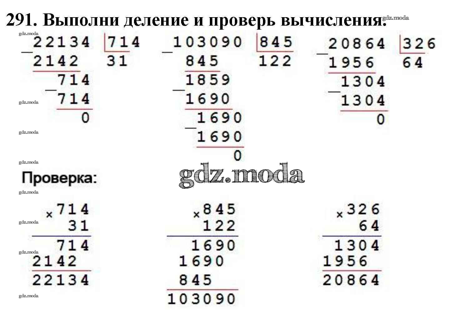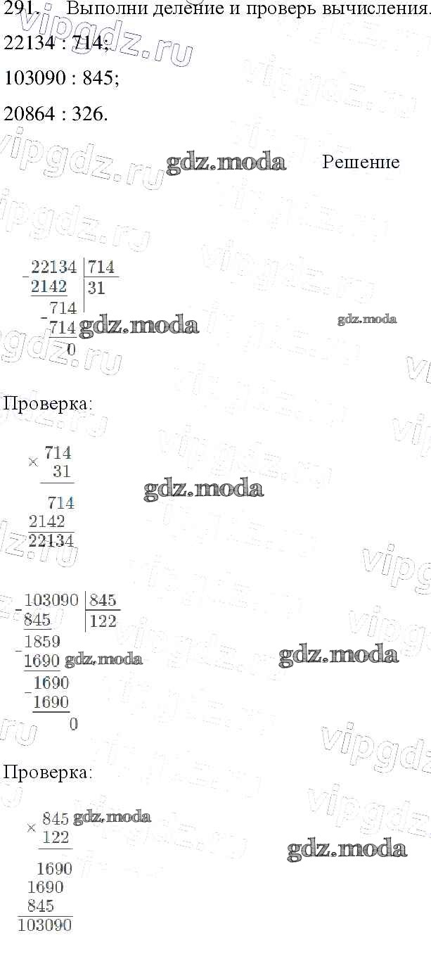 ОТВЕТ на задание № 291 Учебник по Математике 4 класс Моро Школа России
