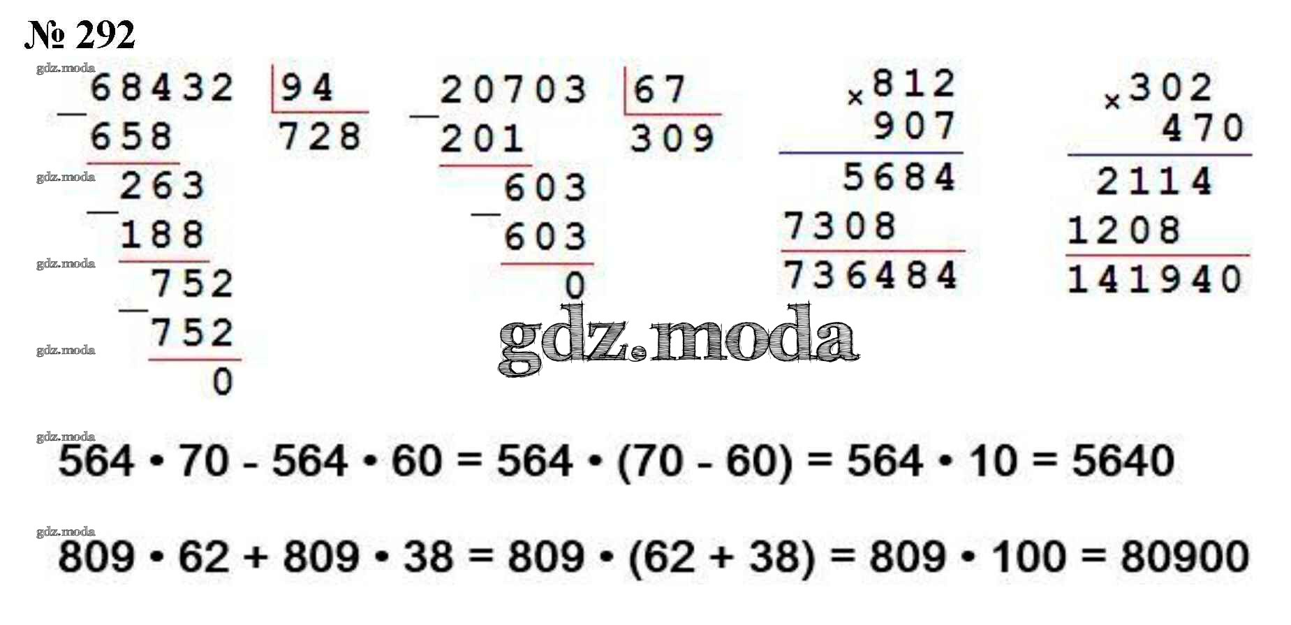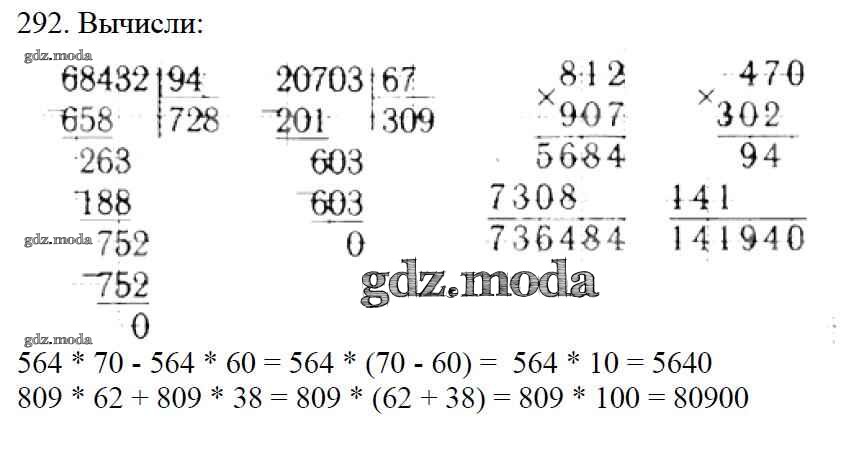 ОТВЕТ на задание № 292 Учебник по Математике 4 класс Моро Школа России