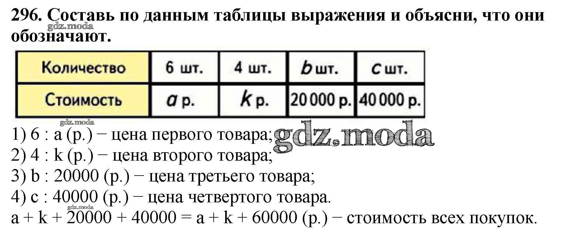 ОТВЕТ на задание № 296 Учебник по Математике 4 класс Моро Школа России