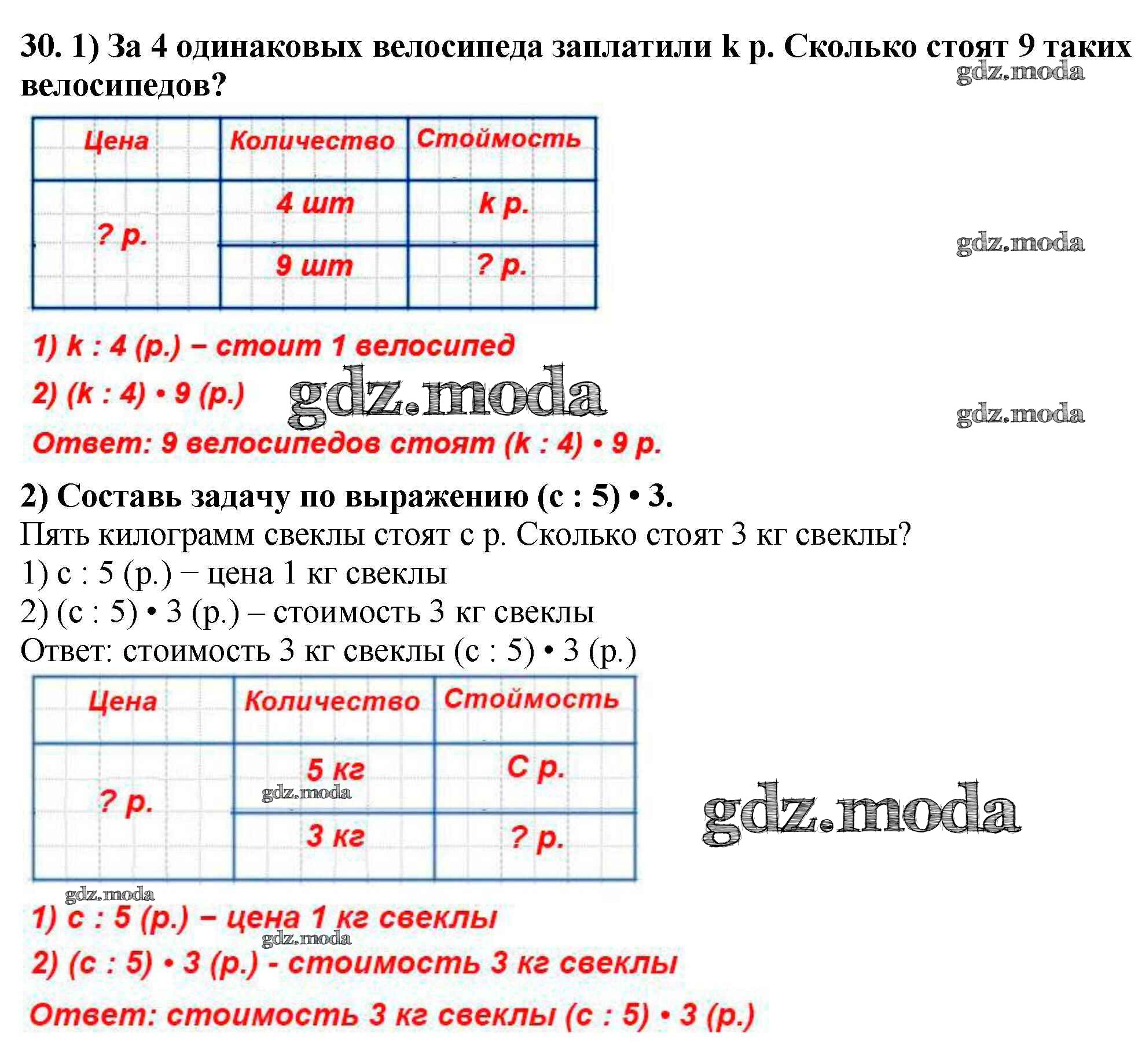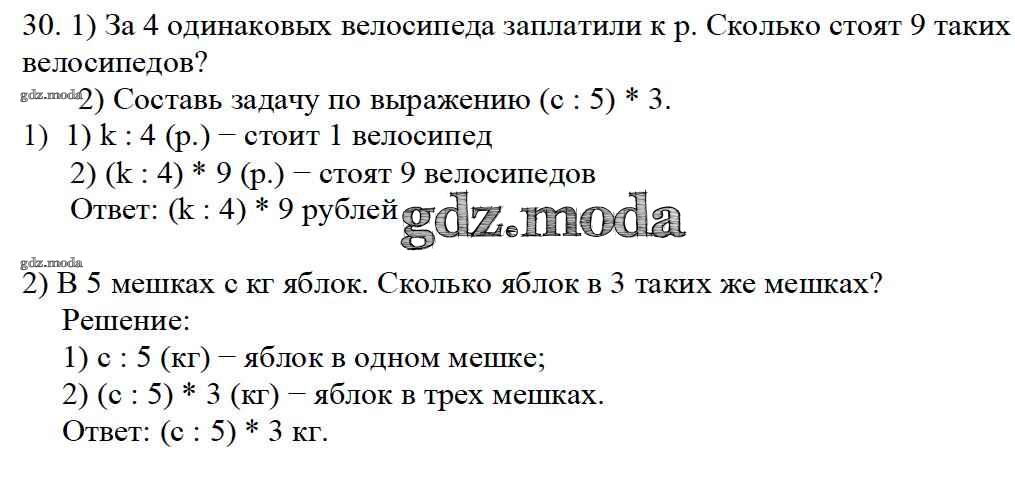 ОТВЕТ на задание № 30 Учебник по Математике 4 класс Моро Школа России