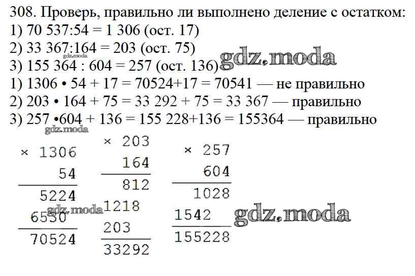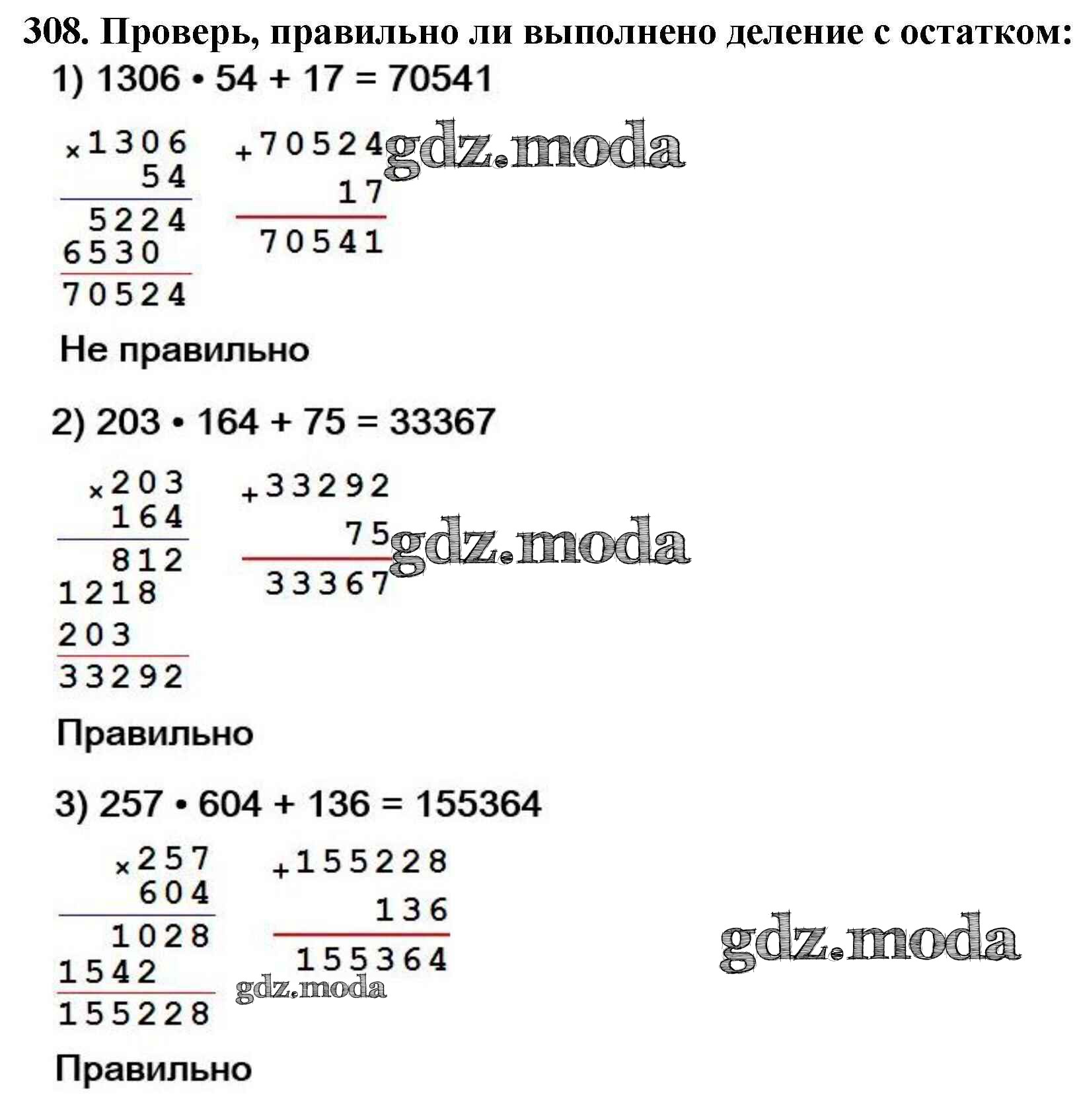 ОТВЕТ на задание № 308 Учебник по Математике 4 класс Моро Школа России