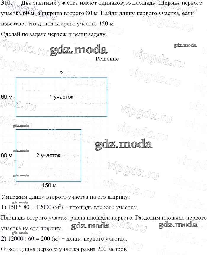 ОТВЕТ на задание № 310 Учебник по Математике 4 класс Моро Школа России