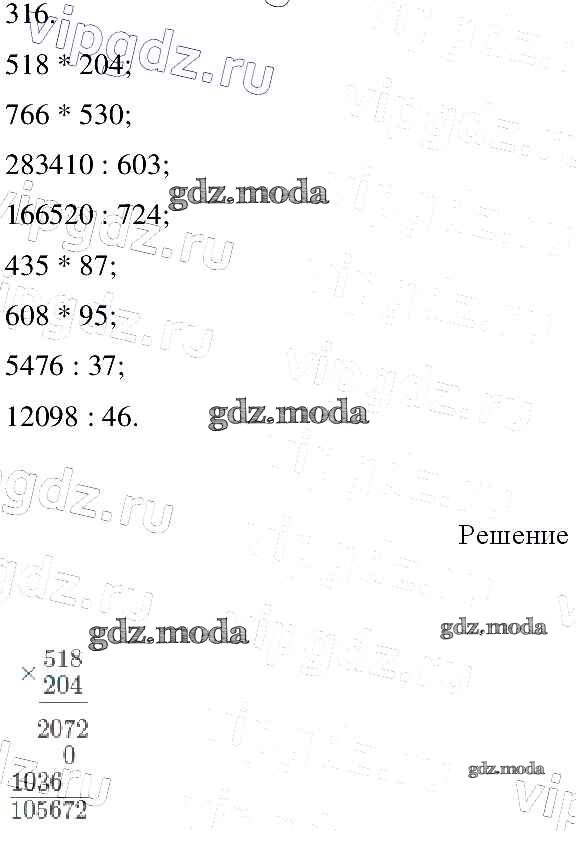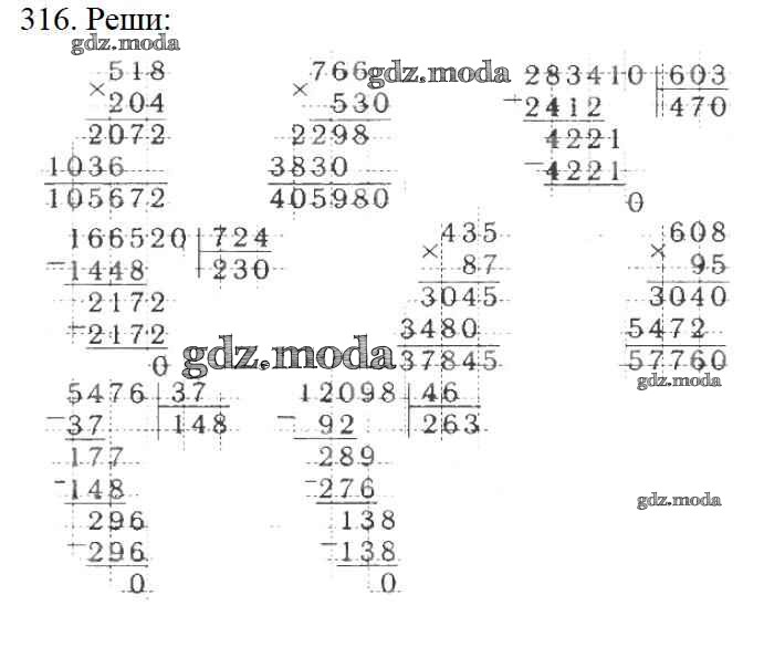 ОТВЕТ на задание № 316 Учебник по Математике 4 класс Моро Школа России