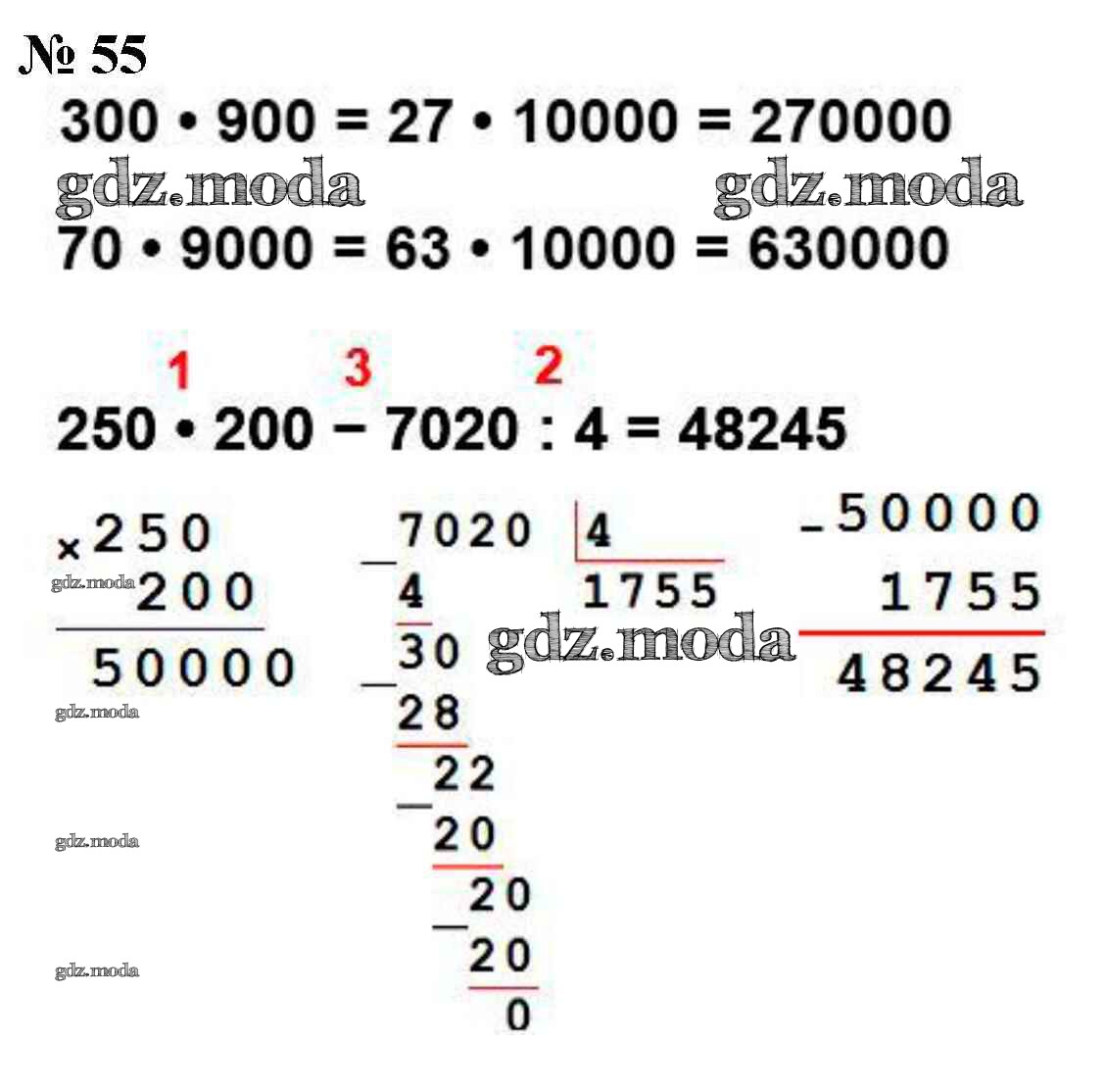 ОТВЕТ на задание № 55 Учебник по Математике 4 класс Моро Школа России