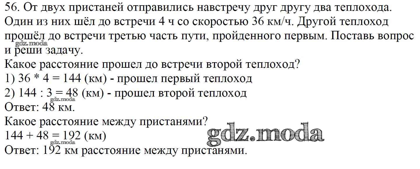 ОТВЕТ на задание № 56 Учебник по Математике 4 класс Моро Школа России