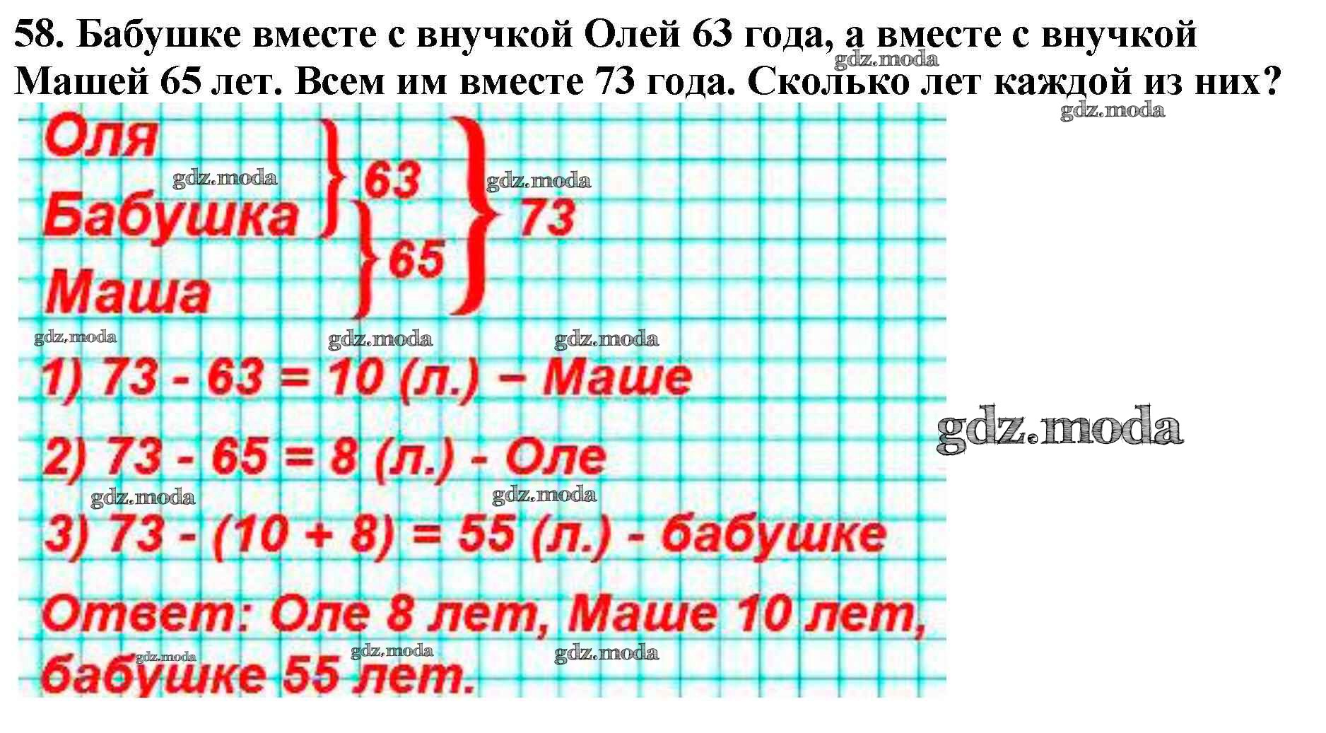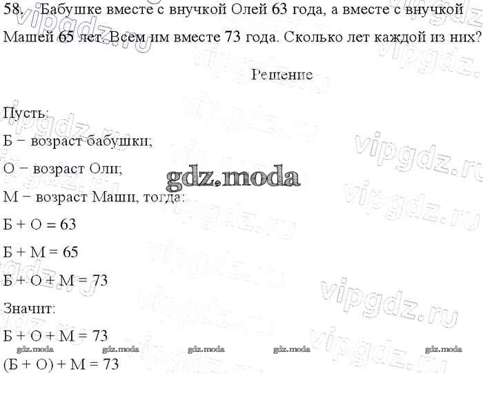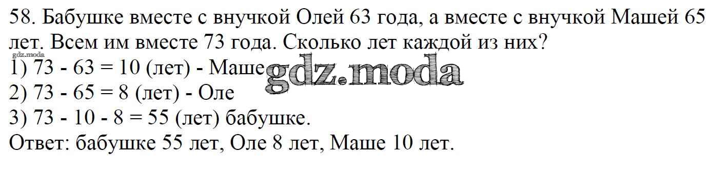 ОТВЕТ на задание № 58 Учебник по Математике 4 класс Моро Школа России