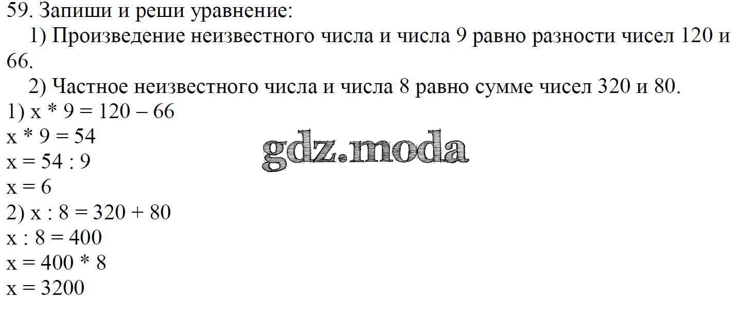 ОТВЕТ на задание № 59 Учебник по Математике 4 класс Моро Школа России