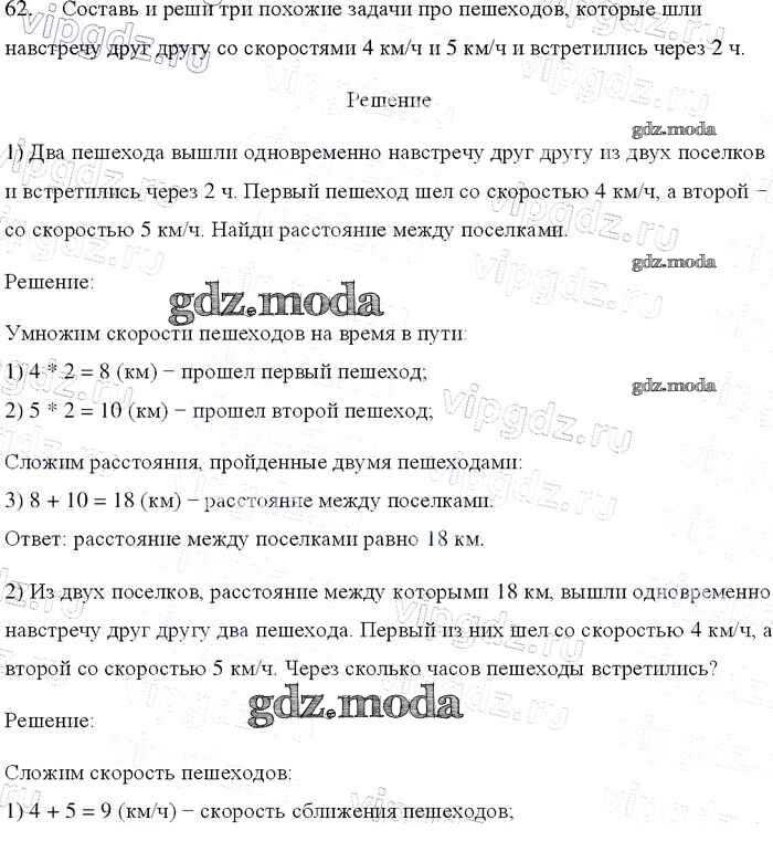ОТВЕТ на задание № 62 Учебник по Математике 4 класс Моро Школа России