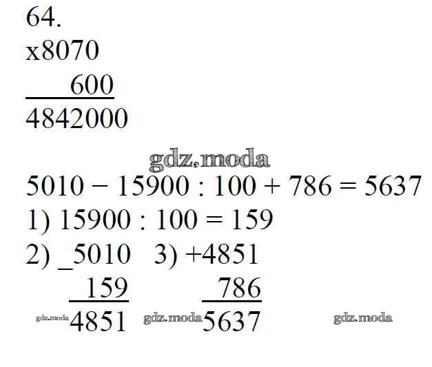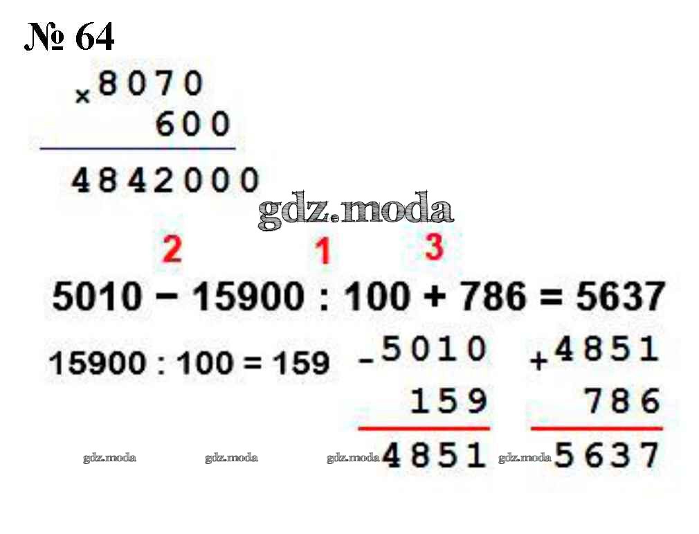 ОТВЕТ на задание № 64 Учебник по Математике 4 класс Моро Школа России
