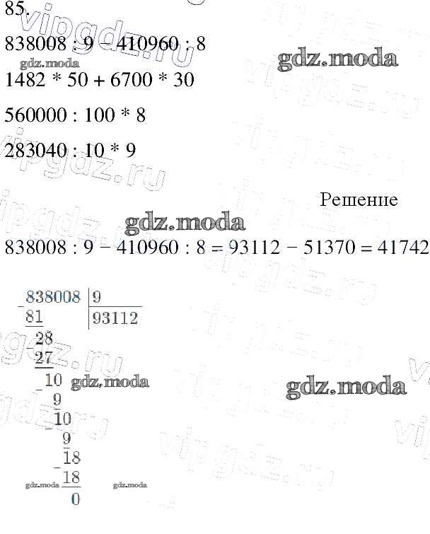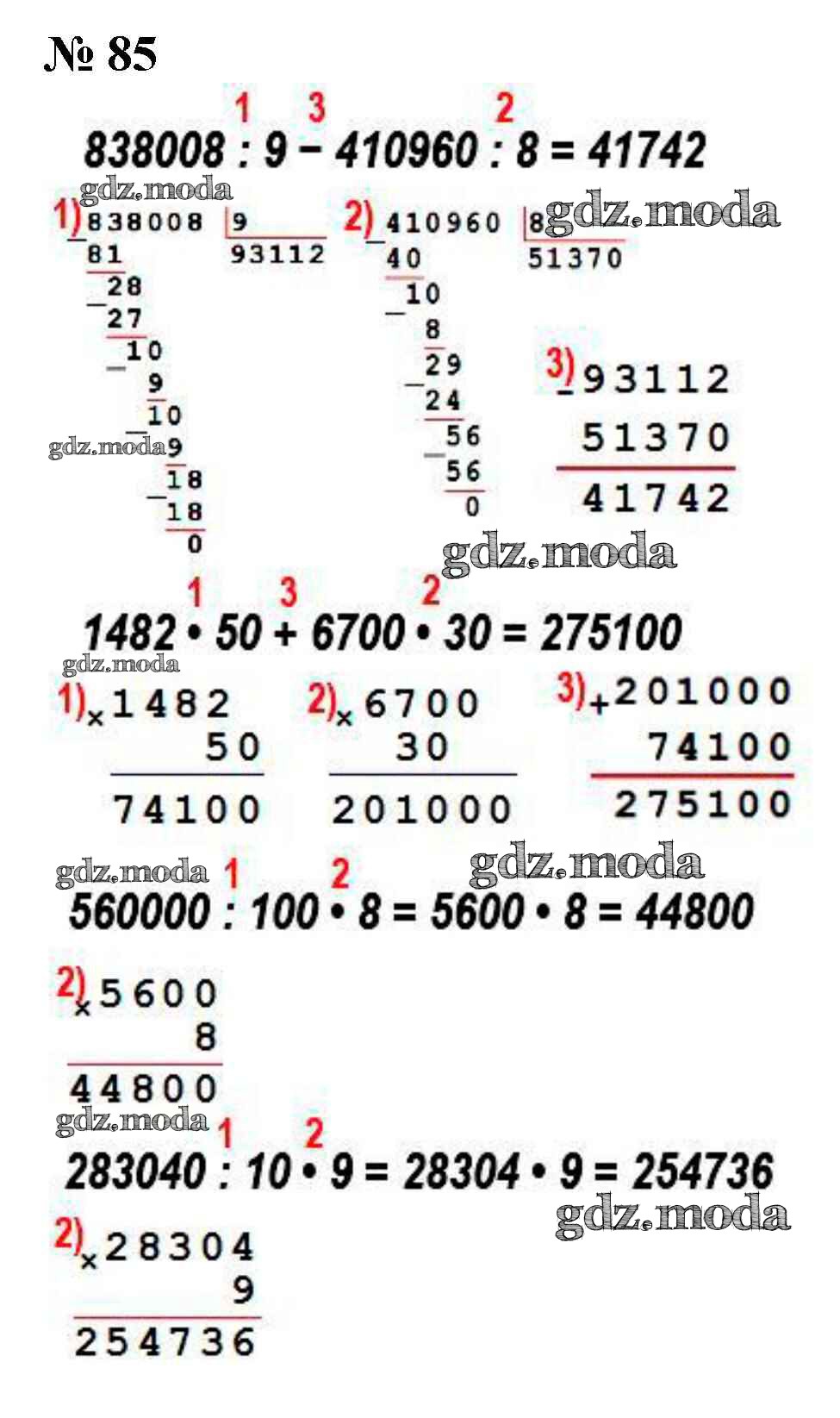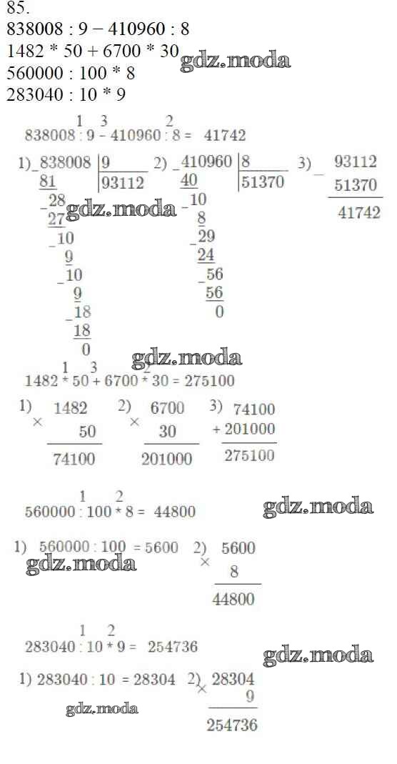 ОТВЕТ на задание № 85 Учебник по Математике 4 класс Моро Школа России