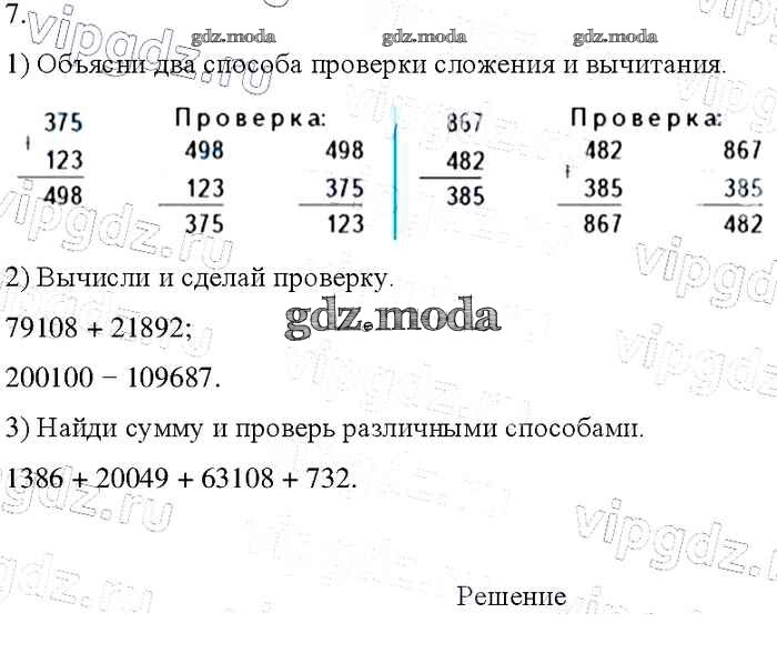 ОТВЕТ на задание № 7 Учебник по Математике 4 класс Моро Школа России
