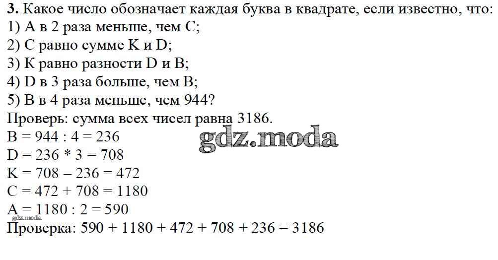 ОТВЕТ на задание № 3 Учебник по Математике 4 класс Моро Школа России