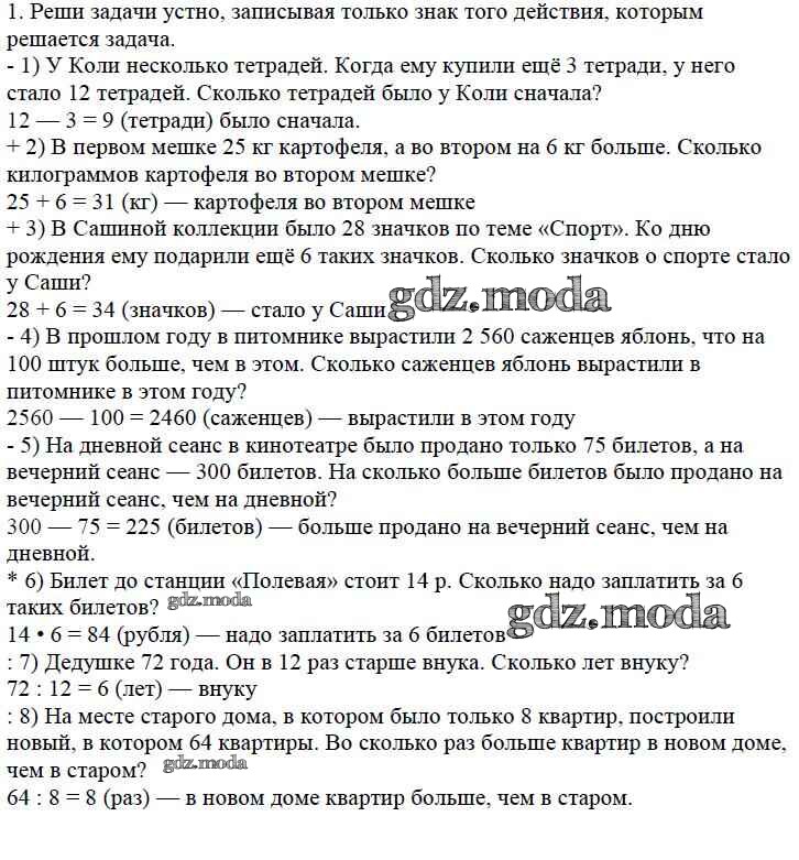 ОТВЕТ на задание № 1 Учебник по Математике 4 класс Моро Школа России