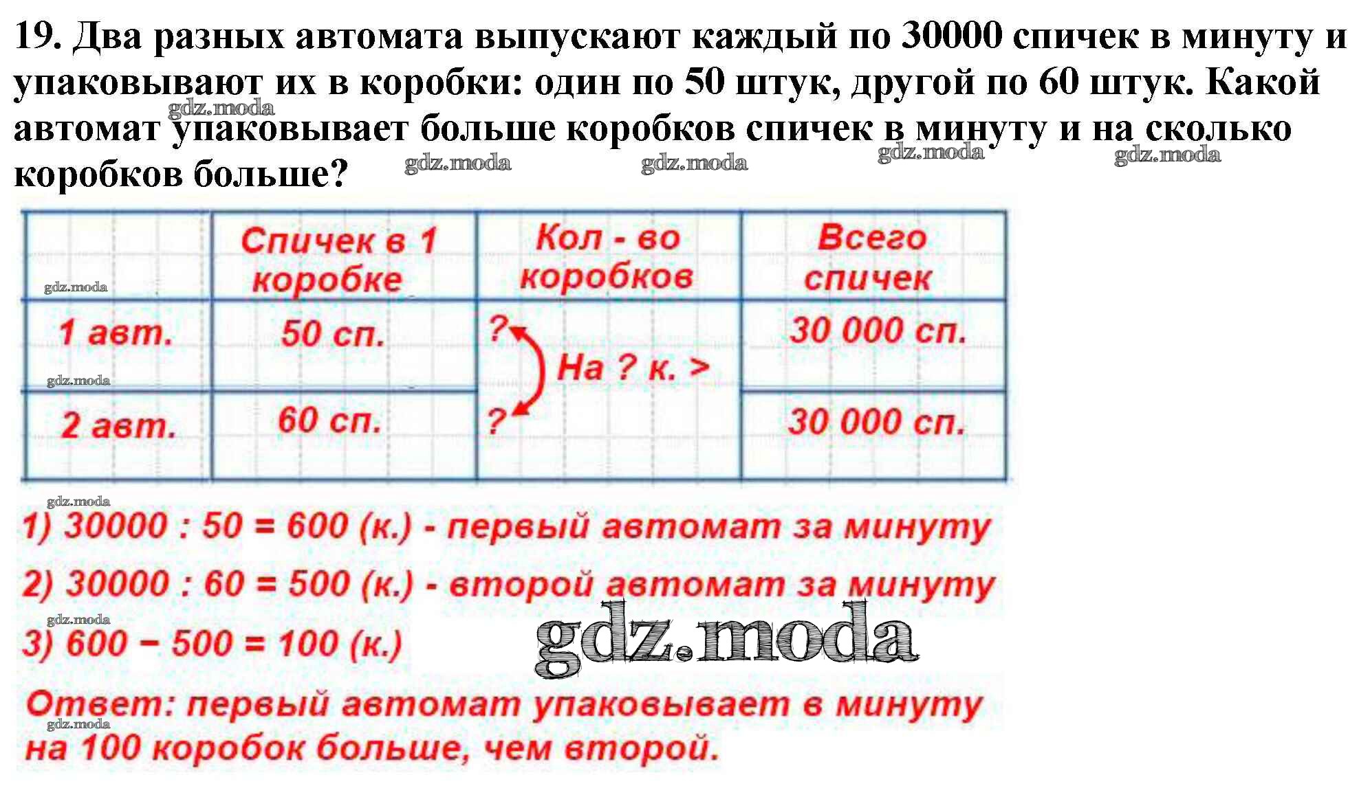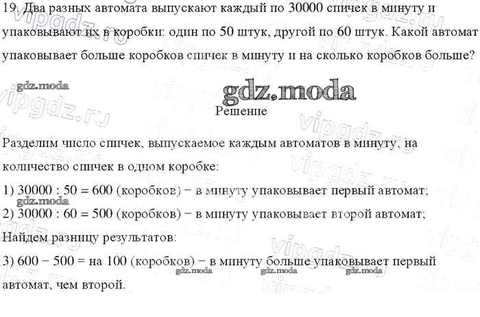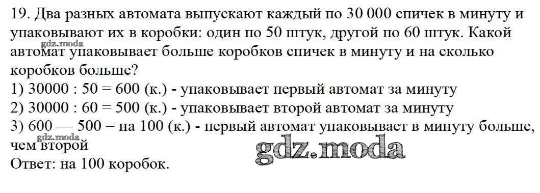 ОТВЕТ на задание № 19 Учебник по Математике 4 класс Моро Школа России