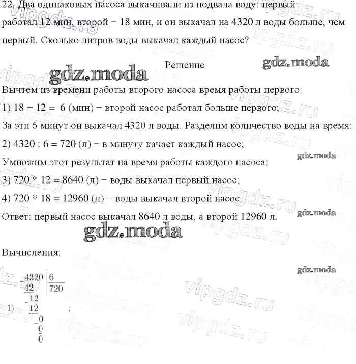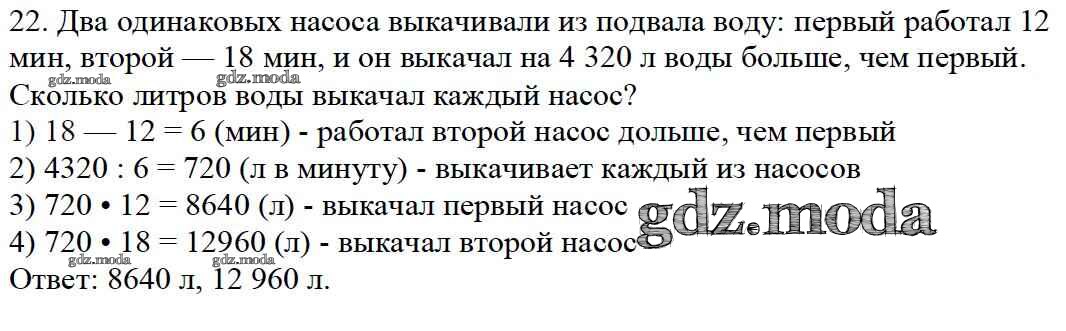 ОТВЕТ на задание № 22 Учебник по Математике 4 класс Моро Школа России