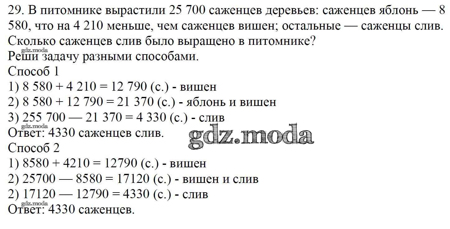 ОТВЕТ на задание № 29 Учебник по Математике 4 класс Моро Школа России