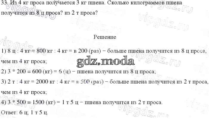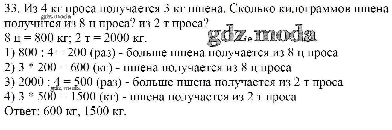 ОТВЕТ на задание № 33 Учебник по Математике 4 класс Моро Школа России