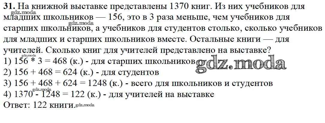 ОТВЕТ на задание № 31 Учебник по Математике 4 класс Моро Школа России